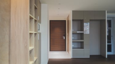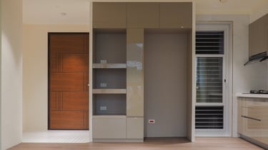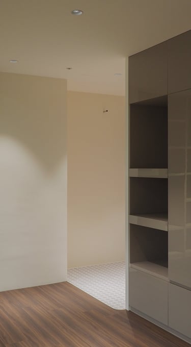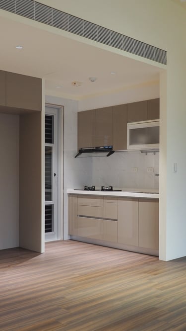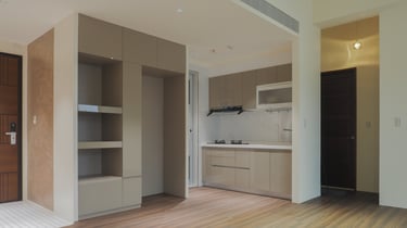 A young couple, where the husband enjoys cooking and the wife loves hosting gatherings, prompted a focus on a spacious kitchen and inviting public space in this 2B2B layout. Initially, an original closed kitchen limited the efficient use of the fragmented public space.