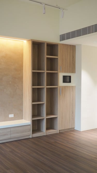 My design demolished kitchen partitions, creating an open layout while reorganizing appliance placements for better functionality. This allowed for a dedicated dining area accommodating 4-6 people, seamlessly integrating living, dining, and work areas—a perfect fit for their work- from-home needs.