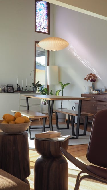 The clients, a family-oriented couple, selected this house for its spacious backyard, perfect for their two dogs to frolic, and its well-defined indoor layout, providing a clear separation between public and private areas. This layout suits the hostess, who loves to entertain guests while maintaining privacy.