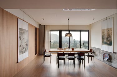 Located in Beitou District, Taipei City, a renowned hot spring area just a 40-minute drive from the bustling downtown, this vacation home was designed with the homeowner's relaxation in mind. As a retreat, it doesn't require a full living space or extensive storage. Instead, it features one reserved bedroom and a versatile multi- functional area for dining, meetings, and resting.